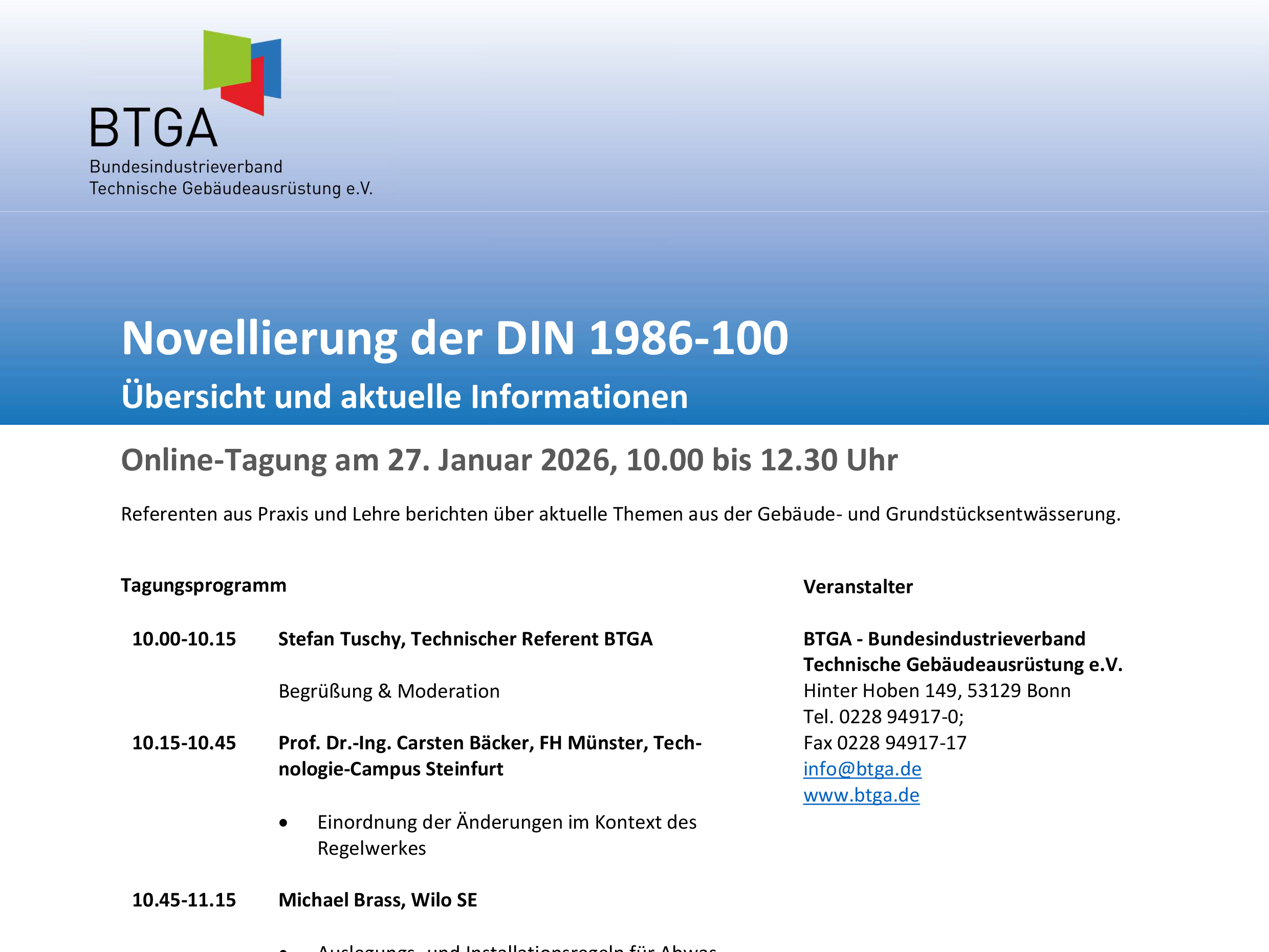 | BTGA-Online-Seminar zum Thema "Entwässerungsanlagen für Gebäude und Grundstücke" |