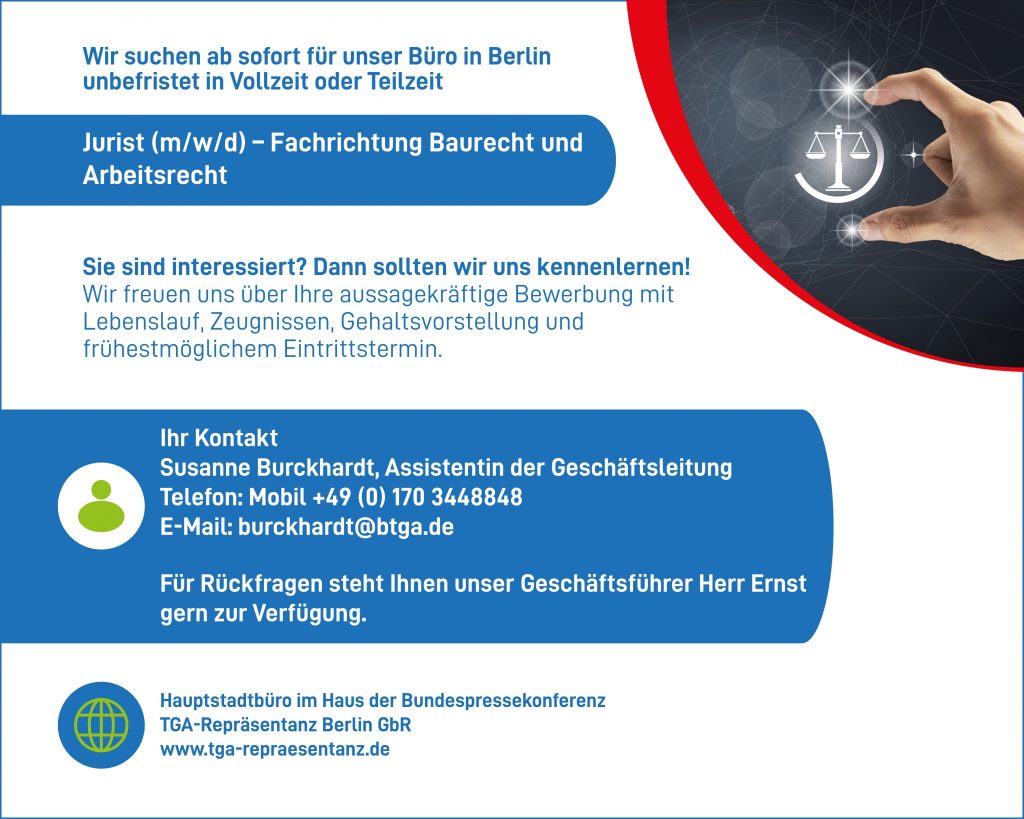 • Idealerweise Erfahrungen im Umfeld der Bauwirtschaft, der Gebäudetechnik oder innerhalb eines Verbandes