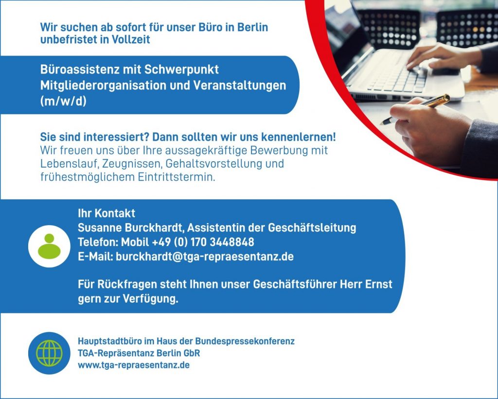 Wir suchen zum nächstmöglichen Zeitpunkt für unser Hauptstadtbüro unbefristet in Vollzeit