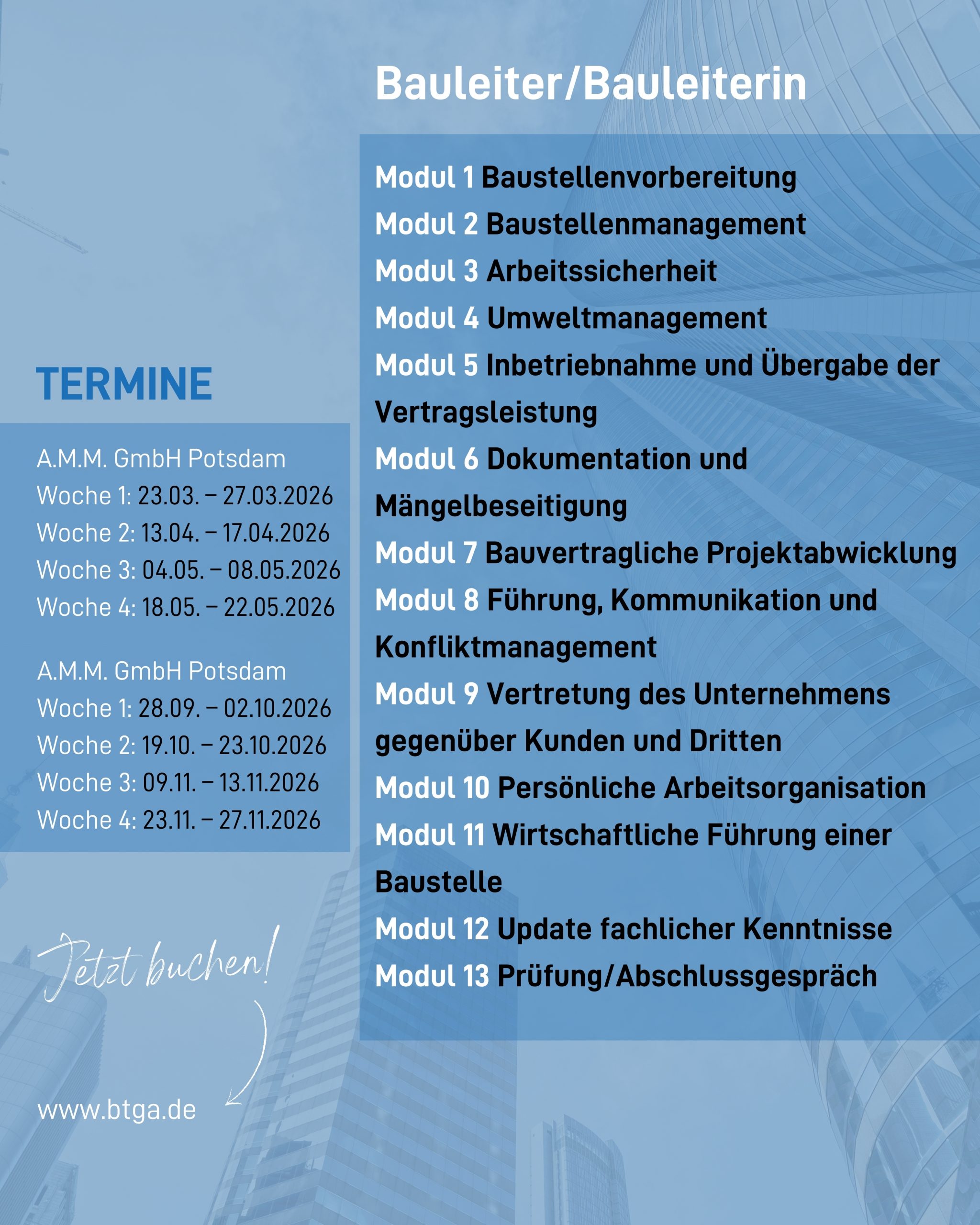 18 Dez. Zertifizierte Labelseminare „Bauleiter BTGA“